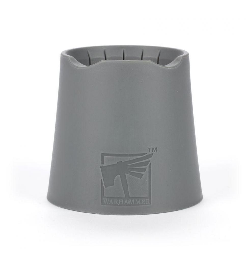 Mieux qu'un simple récipient, le Pot à Eau Warhammer a été conçu par les peintres, pour les peintres. Moulé dans un plastique gris solide, il comporte sur sa face intérieure et son fond des fentes dont la texture optimise le nettoyage des pinceaux. Au sommet, un canal permet de déposer les pinceaux à l'horizontale quand ils ne servent pas, et il y a contre le bord interne des fentes de largeur décroissante – une fois que vous avez rincé votre pinceau dans l'eau, faites-le glisser le long d'une fente pour bien lisser sa pointe!