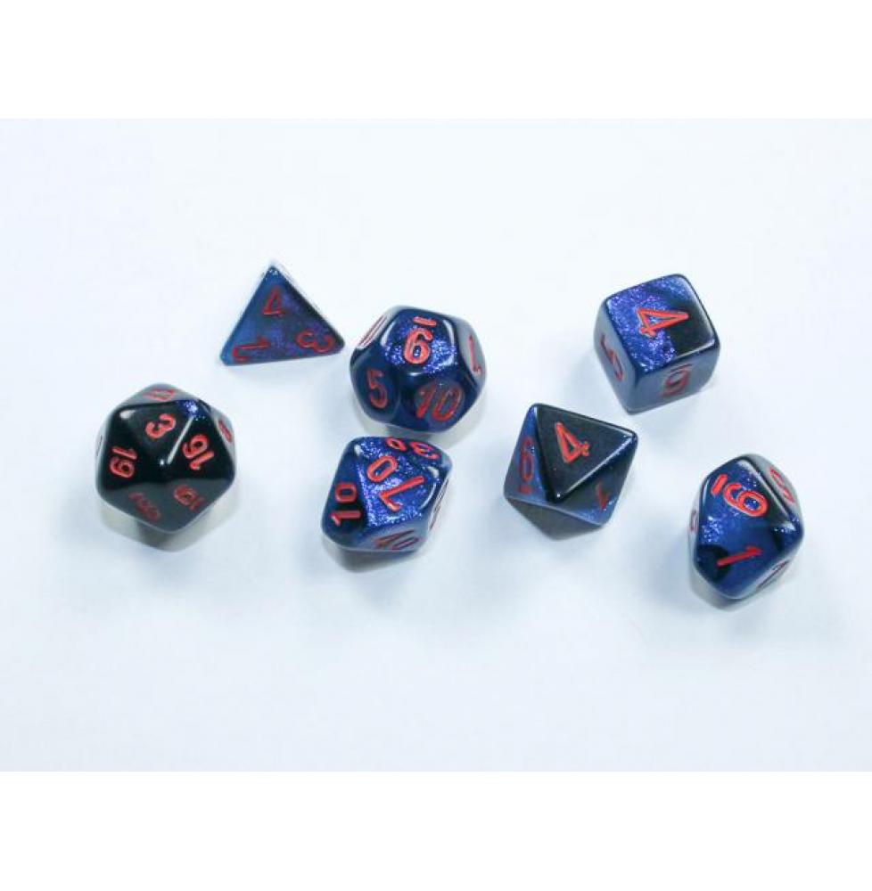 Set de 7 dés Gemini® Mini-Polyhedral Black-Starlight™/red