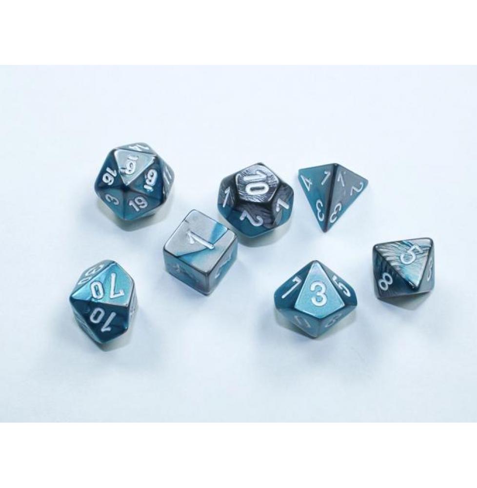 Chessex - 7 dés Gemini® Mini-Polyhedral Steel-Teal/white