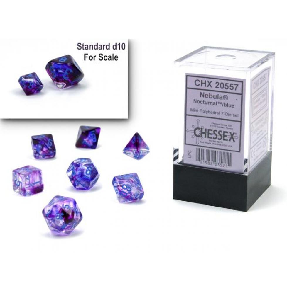 Chessex - 7 dés Nebula® Mini-Polyhedral NocturnalTM/blue LuminaryTM