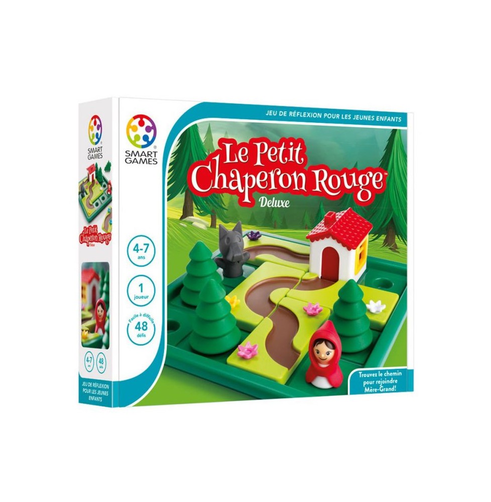 Mais attention! Le loup rode. Jouez également avec lui et parvenez à résoudre 24 autres défis en créant deux chemins différents vers la maison de Mère-Grand : l’un pour le Petit Chaperon Rouge, l’autre pour le loup, qui arrivera toujours le premier…
