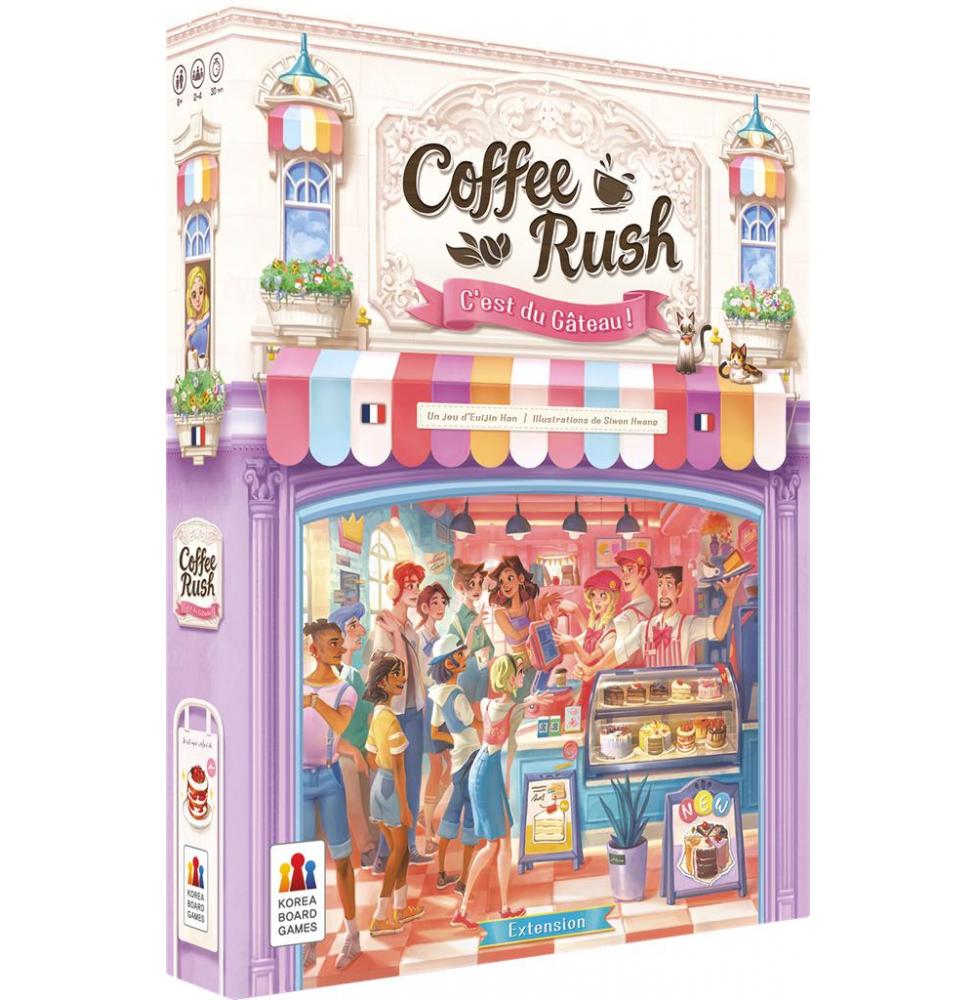 "Coffee Rush : C’est du Gâteau !" est une extension savoureuse qui enrichit l’expérience du jeu de base Coffee Rush. Le service au comptoir se corse : vous ne vous contentez plus de préparer des boissons, il faut désormais assurer aussi côté pâtisserie. Vos baristas devront se surpasser pour tenir le rythme et satisfaire une clientèle toujours plus exigeante.