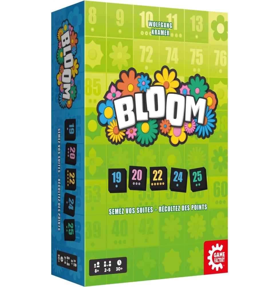 Dans Bloom, chaque choix compte : poser ses tuiles pour marquer rapidement des points ou en piocher d'autres pour viser une suite plus lucrative ? Assemblez des suites numériques astucieuses, volez des tuiles à vos adversaires, optimisez vos poses pour récupérer les jetons les plus convoités. Plus vos suites comptent de fleurs, plus vous marquez. Mais attention à ne pas trop garder en main : chaque fleur non posée vous coûtera cher ! Grâce à une prise en main rapide, une tension constante et des interactions malicieuses, Bloom offre une expérience aussi accessible que stratégique, entre planification, opportunisme et prises de risques calculées.