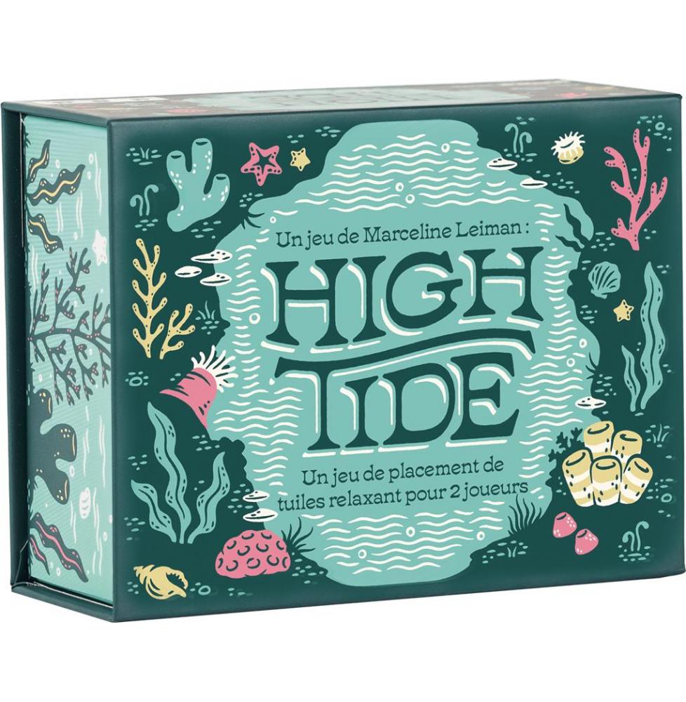 Au gré des marées, les coquillages et crustacés s'amoncellent sur la plage. Dans ce jeu de stratégie abstrait pour 2 joueurs inspiré par le bord de mer (High Tide signifie Marée Haute), vous devrez empilez vos tuiles hexagonales sur celles de votre adversaires. Tentez tour après tour de les recouvrir pour maximiser votre visibilité en fin de partie. Cette mécanique accessible dissimule une vraie tension stratégique. La partie s'achève lorsque l'un de vous ne peut plus déplacer de tuiles lors de son tour. En cas d'égalité, c'est la hauteur de vos piles qui détermine le gagnant de la manche. Le jeu se joue en 3 manches gagnantes.